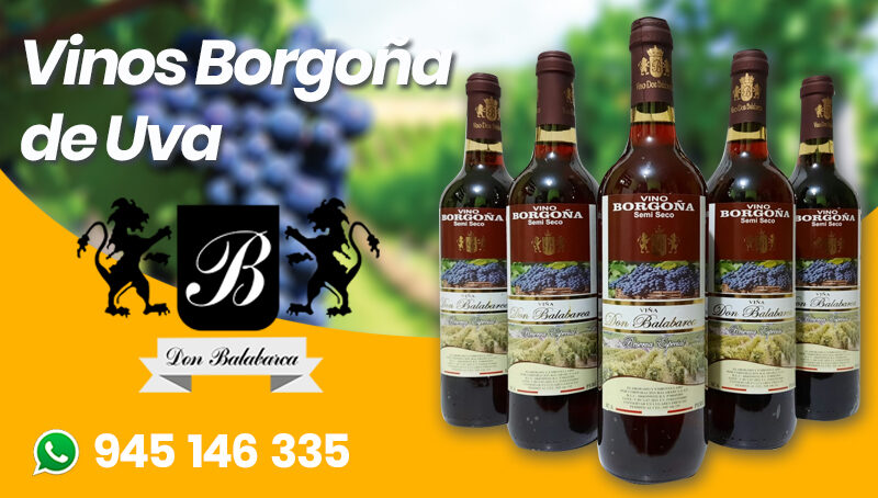 Productos Vinos Borgoña Vinos Borgoña de Uva agosto 24, 2021 by webmaster No hay comentarios VINOS DON BALABARCA, OFRECE A LA VENTA VINO BORGOÑA DE UVA 750ML POR UNIDAD Y POR CAJA DE 12 UNIDADES.
